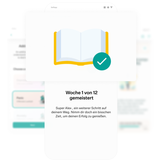 Du registrierst dich bei Selfapy, gibst deinen 16-stelligen Freischaltcode ein und startest direkt mit deinem Programm.